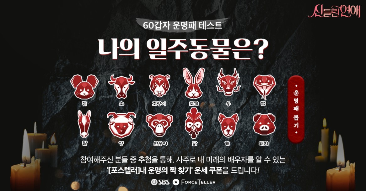 일주동물은 동양의 MBTI라고 하는데요. 운명패 뽑아보고 내 미래의 배우자를 확인해보세요!