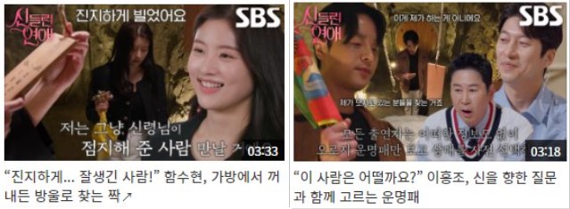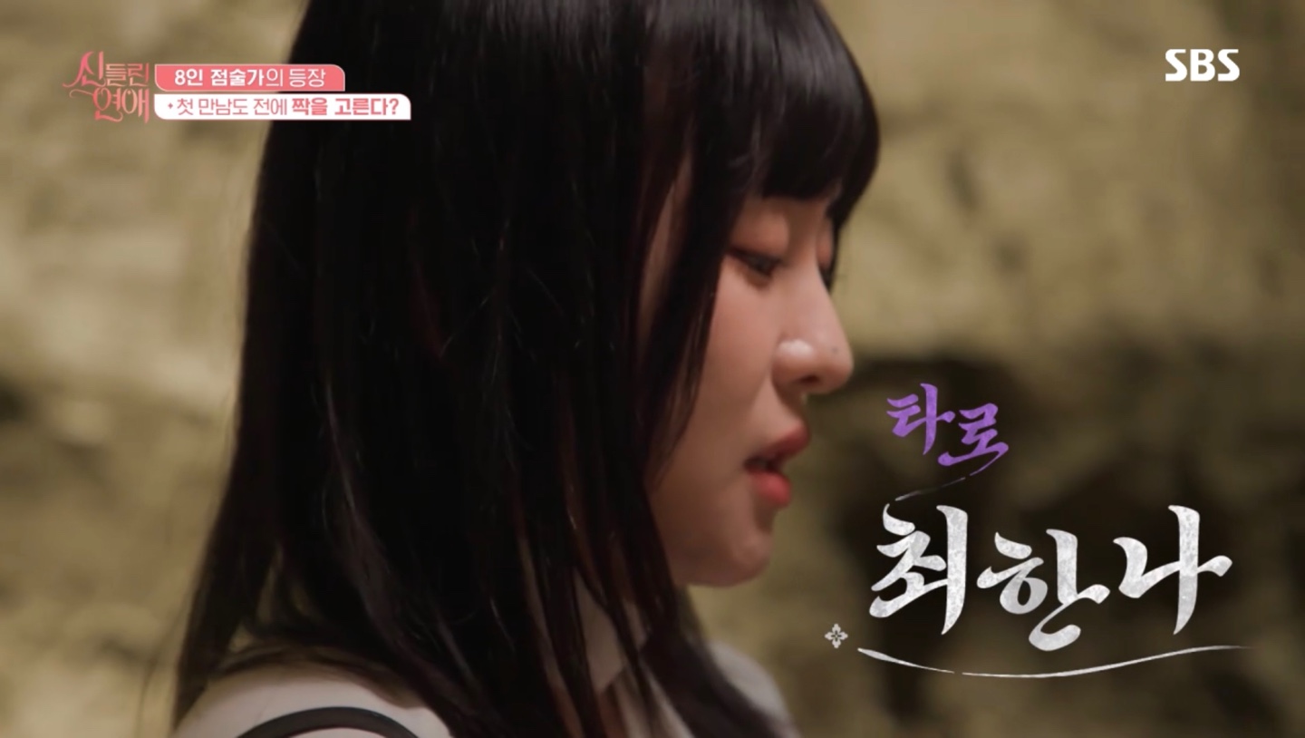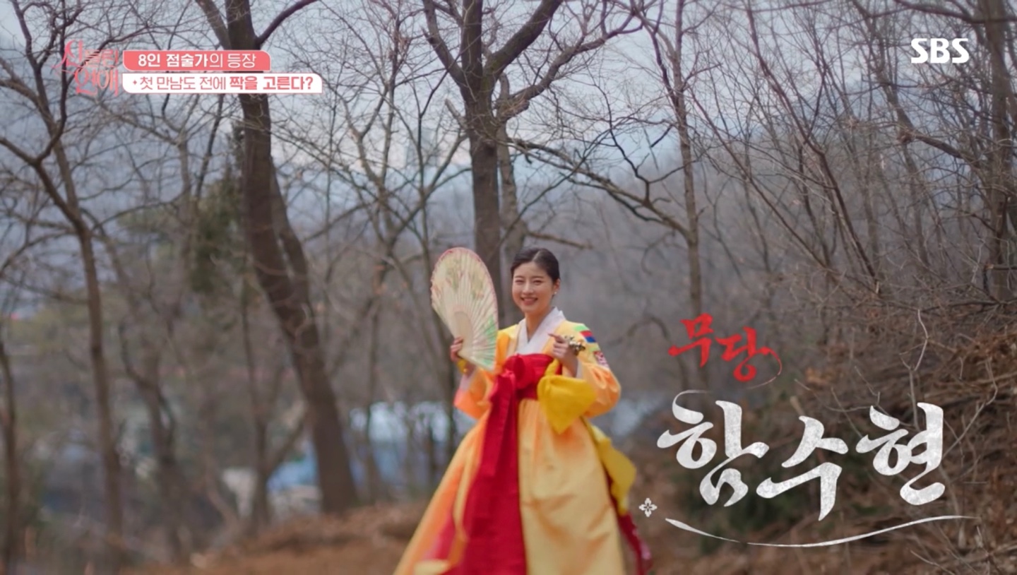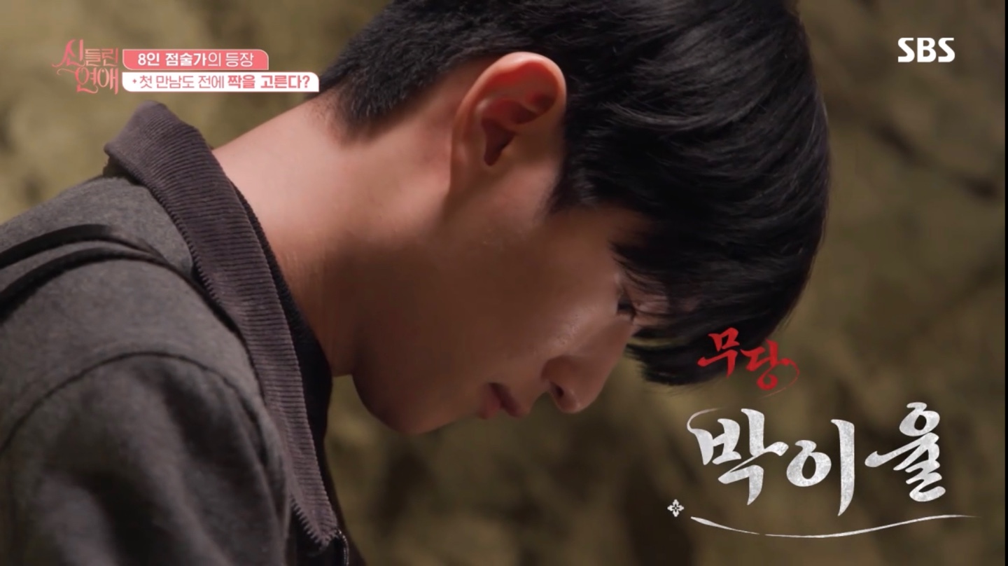 <신들린 연애> 출연자들은 본격적인 만남 전에 이성의 사주정보만 미리 본 후 자신만의 방법으로 운명의 상대를 미리 점쳤습니다. 부채, 타로카드, 엽전, 방울 등의 도구를 사용하여 운명의 상대를 고르는 모습부터 신선한 등장이었습니다.